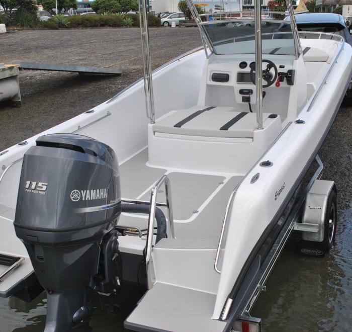 Innovative and efficient hull design provides an exceptional soft, dry ride. The 115 hp outboard produces over 60km/hr of performance whilst keeping fuel consumption to a minimum.